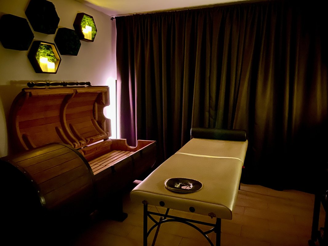 Само место внутри очень красивое, всё очень аккуратненько, чистенько, даже в туалете обратила внимание на полотенчики для рук. Клиентоориентированность на очень высоком уровне! У меня была по сертификату СПА-услуга, куда входили душ Виши, бочка и расслабляющий массаж. Мастер очень приятно, мягко общалась, при этом без лишних разговоров.